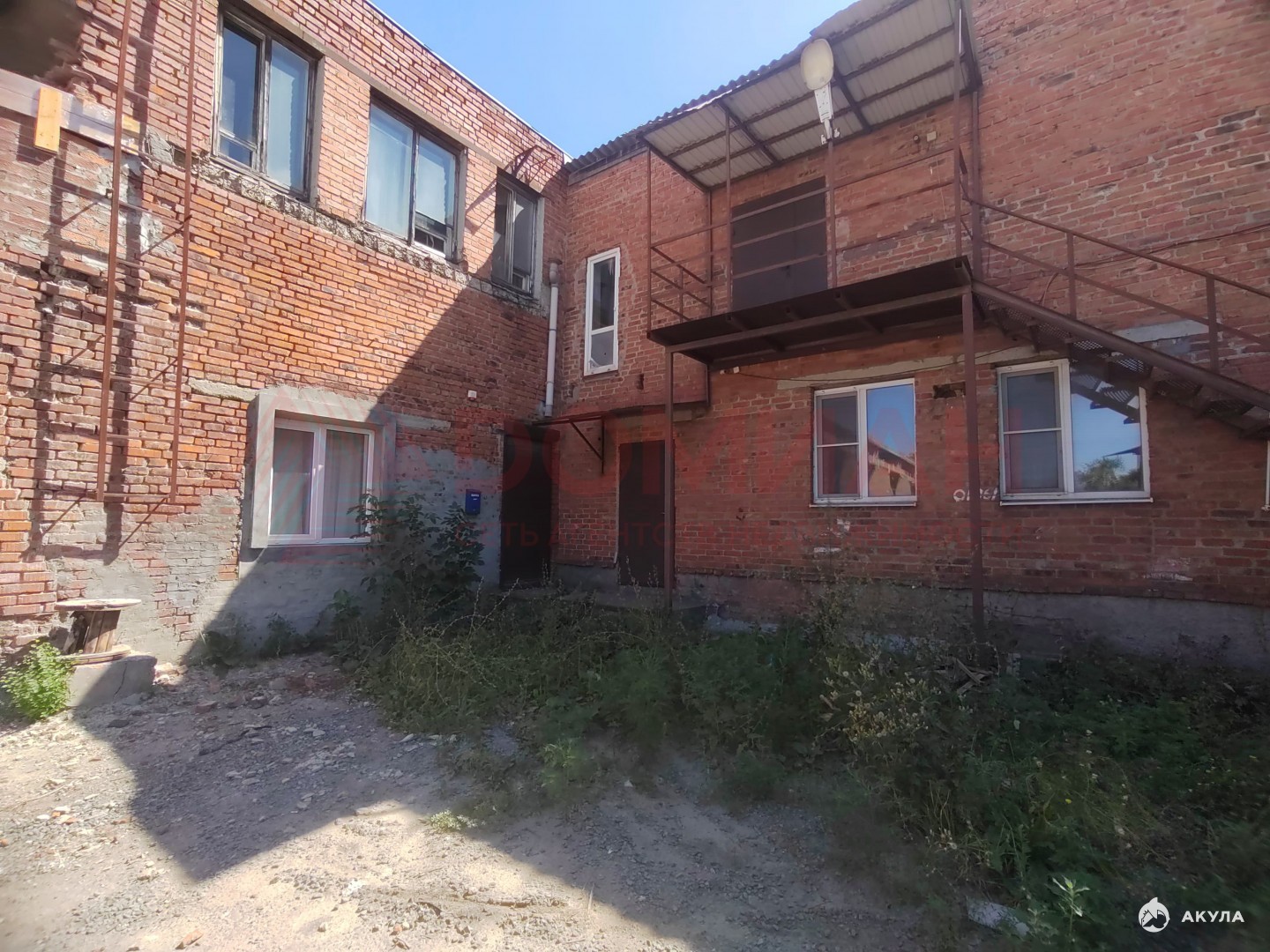 Здание двух этажное. Один вход со двора, центральный вход с центральной улицы.