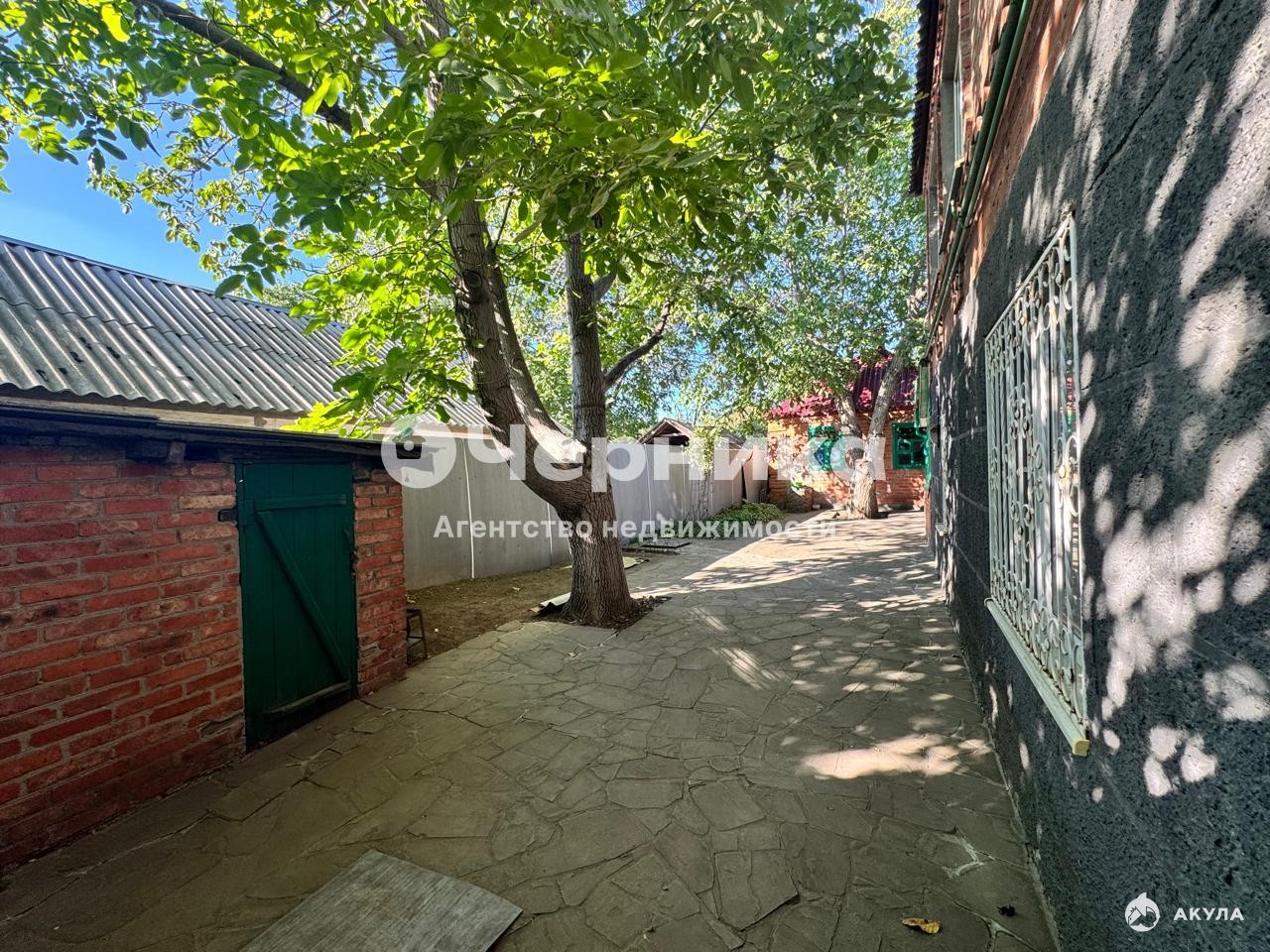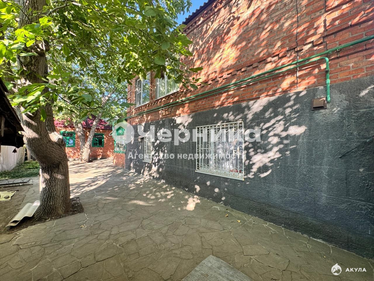 Двор достоин отдельного внимания : вымощен природным камнем, организована зона барбекю , , кирпичные хозпостройки для бытового инвентаря, уличные удобства и душ. Сад и двор в ухоженном состоянии, множество цветов и фруктовых деревьев.